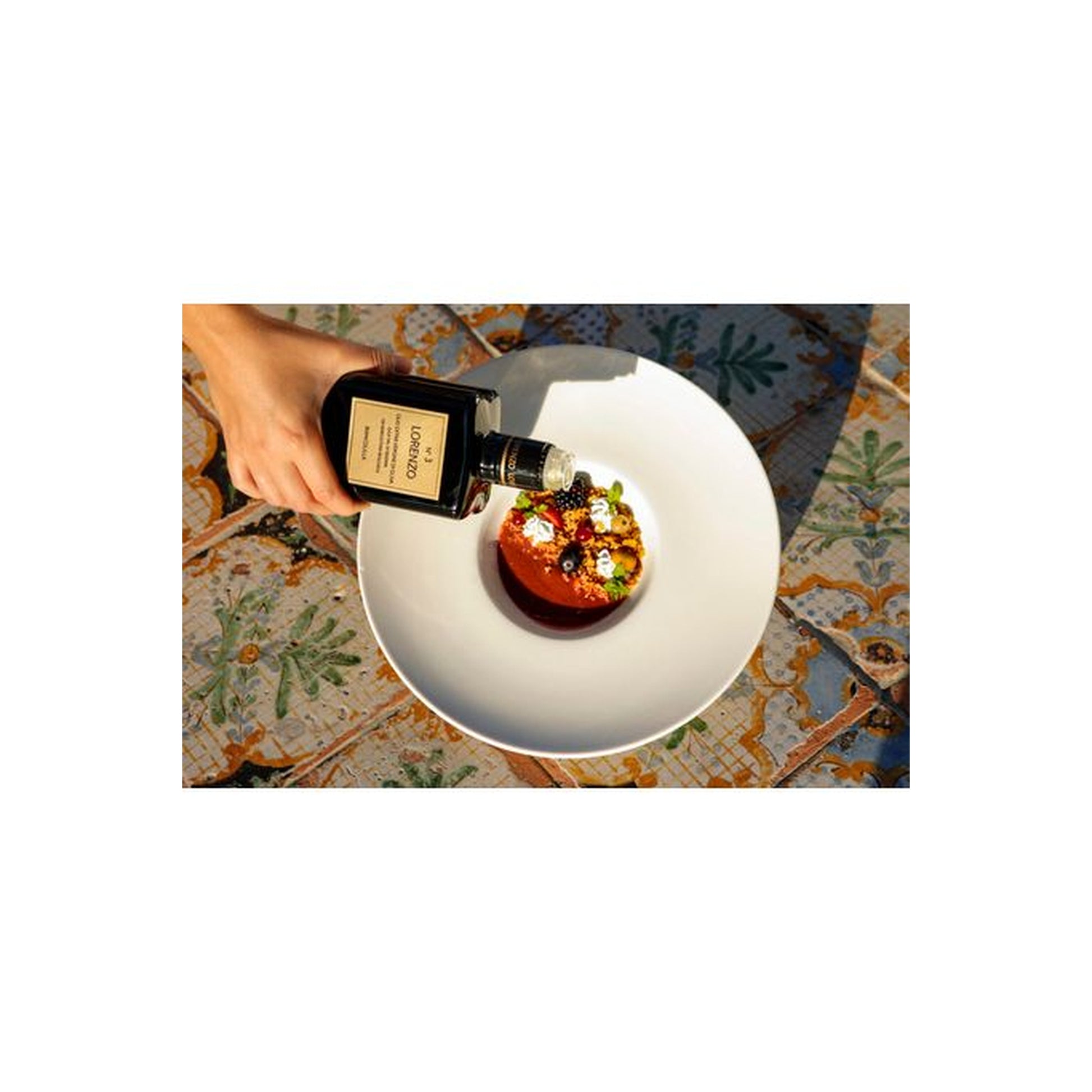 Produced from organically grown “Biancolilla” olives, grown at over 700 meters above sea level on high hills. At these altitudes, “Biancolilla” expresses its maximum content of aromatic substances and polyphenols. The result is an oil of great harmony, with a balanced almondy fruitiness, to be paired with all vegetables or fresh cheeses. For its herbaceous scent combined with an unexpected sweetness, it goes perfectly with both raw and cooked fish-based cuisine.